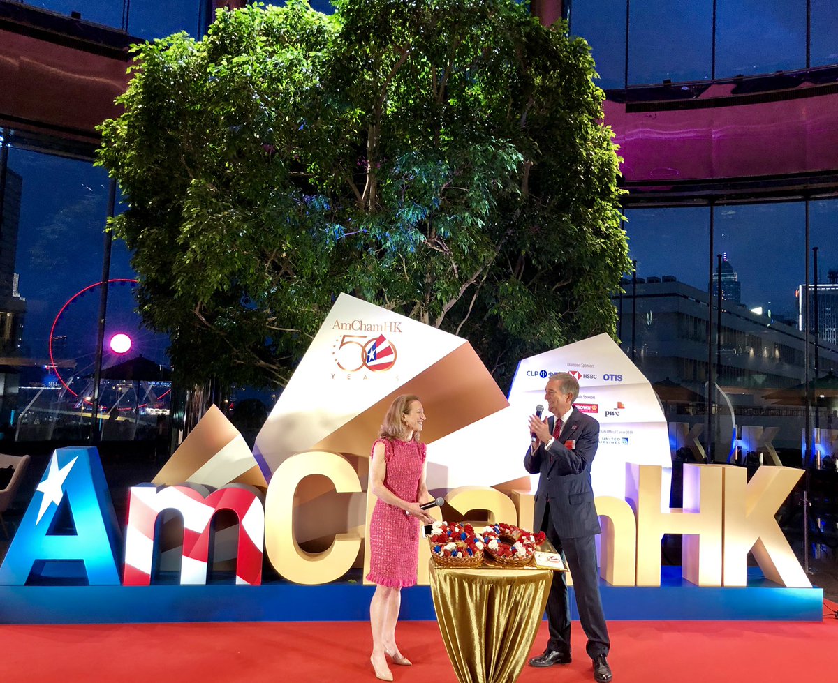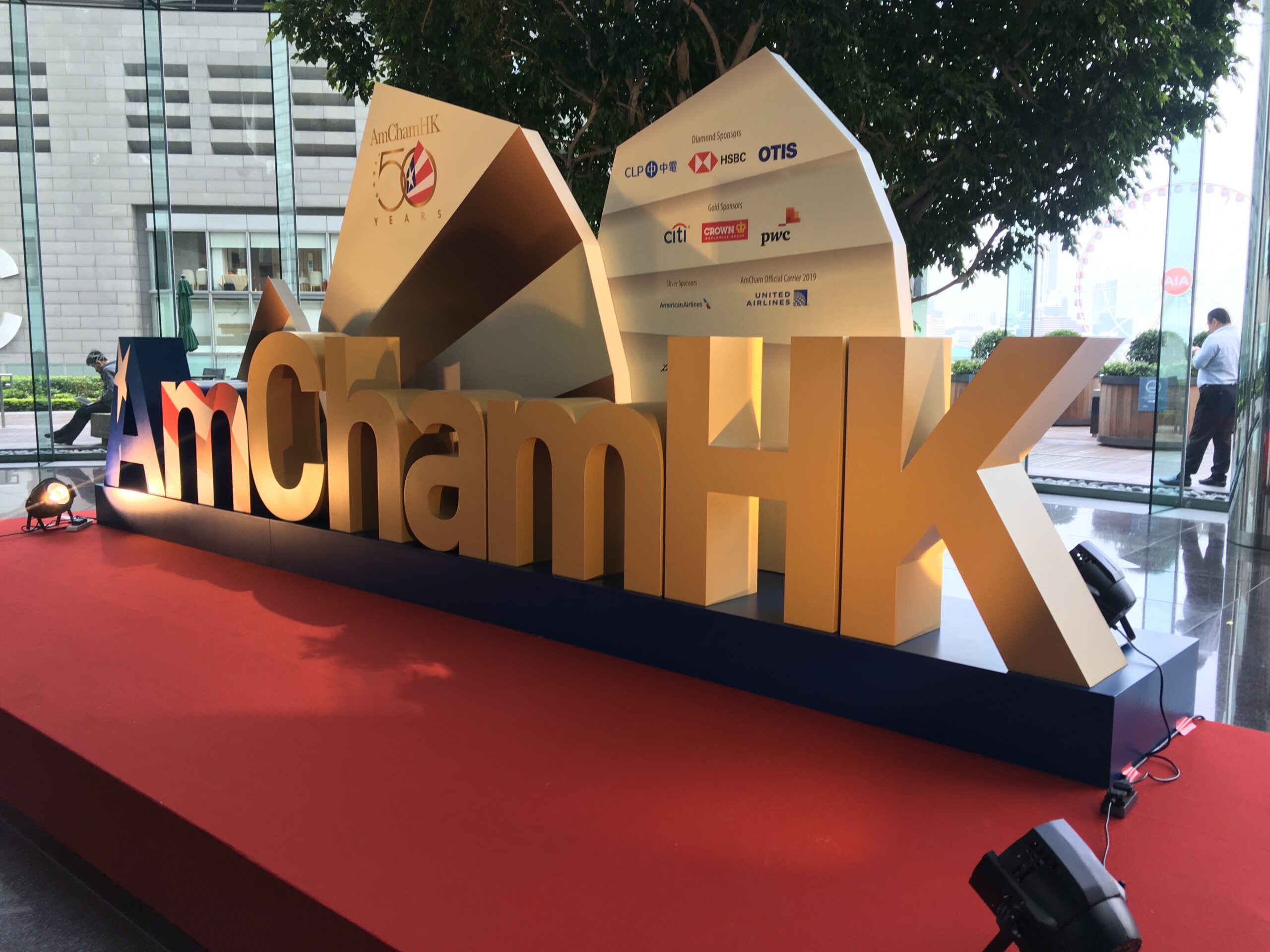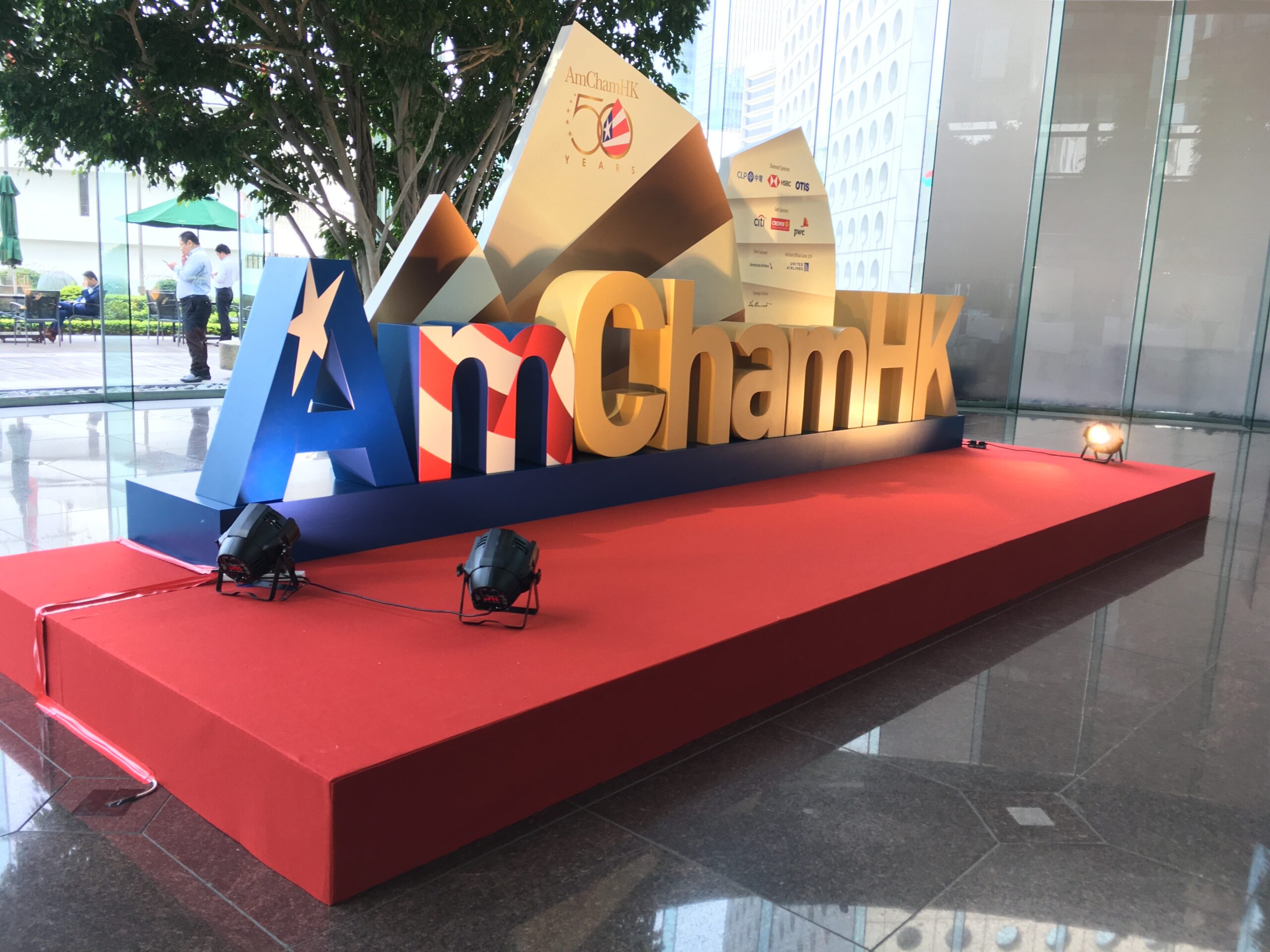 Stage design for AmCham Hong Kong AmChamHK’s 50th Anniversary Exhibition was designed and produced by X2 CREATiVE at Exchange Square Tower. The stage features 3D characters and bold sail designs inspired by the AmCham logo. It’s simple, yet impactful.